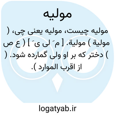 ( مولیة ) مولیة. [ م َ لی ی َ ] ( ع ص ) دختر که بر او ولی گمارده شود. ( از اقرب الموارد ).