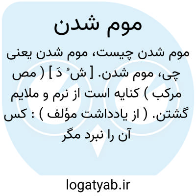 موم شدن. [ ش ُ دَ ] ( مص مرکب ) کنایه است از نرم و ملایم گشتن. ( از یادداشت مؤلف ):