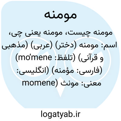 اسم: مومنه (دختر) (عربی) (مذهبی و قرآنی) (تلفظ: mo’mene) (فارسی: مؤمنه) (انگلیسی: momene)