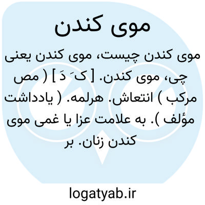 موی کندن. [ ک َ دَ ] ( مص مرکب ) انتعاش. هرلمه. ( یادداشت مؤلف ). به علامت عزا یا غمی موی کندن زنان. بر اثر مصیبتی عظیم موی سر و ریش برکندن. ( یادداشت مؤلف ).
