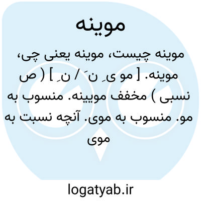 موینه. [ مو ی ِ ن َ / ن ِ ] ( ص نسبی ) مخفف مویینه. منسوب به مو. منسوب به موی. آنچه نسبت به موی دارد. مویینه.مویین. || ( اِ مرکب ) جامه مویین. مویینه. || چرم مویین. || پوست پرموی.( از یادداشت مؤلف ). چیزهایی که مو داشته باشد مثل پوستین و امثال آن یا از خز و سنجاب. ( آنندراج ). پوست دارای موی نرم همچون پوست خز و سنجاب: