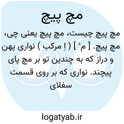مچ پیچ. [ م ُ ] ( اِ مرکب ) نواری پهن و دراز که به چندین تو بر مچ پای پیچند. نواری که بر روی قسمت سفلای پارچه مضبوط پیچند که پای گرم کند. مرادف پاتابه. ( یادداشت به خط مرحوم دهخدا ). || نواری که بر آستین پیچند که آستین را بر مچ دست سخت کند حفظ حرارت را. ( یادداشت به خط مرحوم دهخدا ).