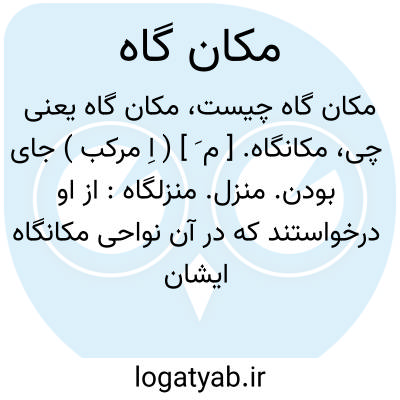 ( اسم ) مکان جای باشش: [ از او در خواستند که در آن نواحی مکان گاه ایشان معین کند. ] ( سلجوقنامه ظهیری. چا. خاور ۱۴ ) توضیح [ مکان ] خود اسم مکان است و احتیاجی به پسوند مکان ندارد ولی در فارسی ازین نوع مستعمل است مانند: معبد جای.