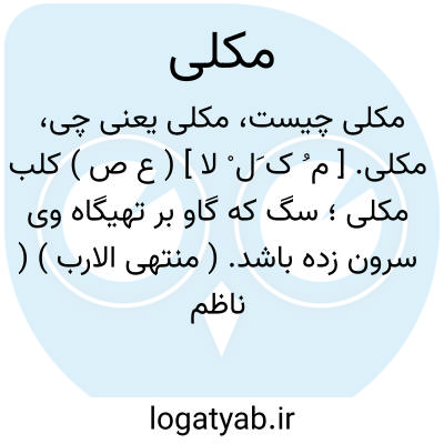 مکلی. [ م ُ ک َل ْ لا ] ( ع ص ) کلب مکلی؛ سگ که گاو بر تهیگاه وی سرون زده باشد. ( منتهی الارب ) ( ناظم الاطباء ).