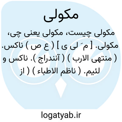 مکولی. [ م َ لی ی ] ( ع ص ) ناکس. ( منتهی الارب ) ( آنندراج ). ناکس و لئیم. ( ناظم الاطباء ) ( از اقرب الموارد ).