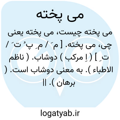 می پخته. [ م َ / م ِ پ ُ ت َ / ت ِ ] ( اِ مرکب ) دوشاب. ( ناظم الاطباء ). به معنی دوشاب است. ( برهان ). || دوشاب قوام آورده. ( ناظم الاطباء ). دوشابی را گویند که چندان بجوشانند که به قوام آید. ( برهان ) ( از انجمن آرا ) ( از آنندراج ). || رب. ( دهار ). || می کهنه را گویند و نو را خام گویند. ( آنندراج ) ( انجمن آرا ). باده کهنه. ( یادداشت مؤلف ):