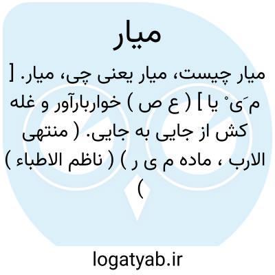 میار. [ م َی ْ یا ] ( ع ص ) خواربارآور و غله کش از جایی به جایی. ( منتهی الارب، ماده م ی ر ) ( ناظم الاطباء ) ( آنندراج ).