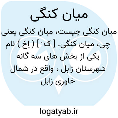 میان کنگی. [ ک َ ] ( اِخ ) نام یکی از بخش های سه گانه شهرستان زابل، واقع در شمال خاوری زابل نزدیک مرز افغانستان و مشخصات آن به شرح زیراست: از شمال و خاور به مرز افغانستان از جنوب به بخش شیب آب و دهستان ناروئی از باختر به بخش شیب آب. منطقه ای است جلگه با هوای گرمسیر معتدل. آب دیه ها بیشتر از رود هیرمند تأمین می شود مرکز بخش ده دوست محمد و تعداد قراء آن 20 و جمعیت آن در حدود 68700 تن است. راههای بخش عموماً مالرو است و قراء مهم آن عبارت است از: جهان آباد، خمک، سیادک، میلک، کرکو. صنایع دستی زنان، قالیچه و گلیم و کرباس بافی است. ( از فرهنگ جغرافیائی ایران ج 8 ). از بلوکات ولایت سیستان ایران وعده قراء آن 20 است. ( از جغرافیای سیاسی کیهان ).