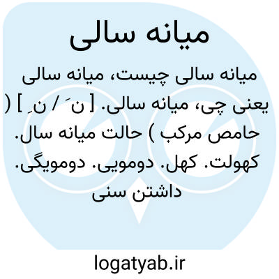 میانه سالی. [ ن َ / ن ِ ] ( حامص مرکب ) حالت میانه سال. کهولت. کهل. دومویی. دومویگی. داشتن سنی در میان جوانی و پیری. نه جوان و نه پیر بودن. ( از یادداشت مؤلف ).
