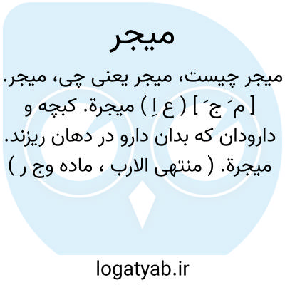 میجر. [ م َ ج َ ] ( ع اِ ) میجرة. کبچه و دارودان که بدان دارو در دهان ریزند. میجرة. ( منتهی الارب، ماده وج ر ) ( ناظم الاطباء ) ( آنندراج ).