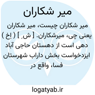 میرشکاران. [ ش ِ ] ( اِخ ) دهی است از دهستان حاجی آباد ایزدخواست بخش داراب شهرستان فسا، واقع در 60هزارگزی جنوب داراب با 121 تن سکنه. آب آن از چاه و راه آن ماشین رو است. ( از فرهنگ جغرافیائی ایران ج 7 ).