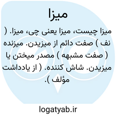 میزا. ( نف ) صفت دائم از میزیدن. میزنده ( صفت مشبهه ) مصدر میختن یا میزیدن. شاش کننده. ( از یادداشت مؤلف ).