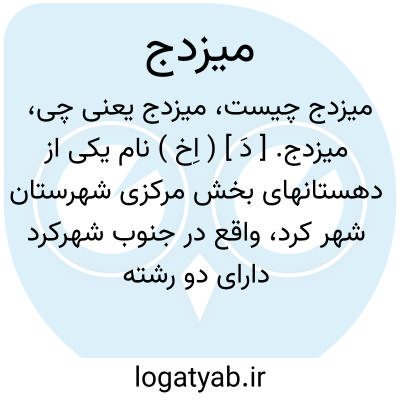 میزدج. [ دَ ] ( اِخ ) نام یکی از دهستانهای بخش مرکزی شهرستان شهر کرد، واقع در جنوب شهرکرد دارای دو رشته ارتفاعات که از خاور به باختر کشیده شده است. هوای دهستان معتدل و سالم و آب آبادیهای آن از رودخانه های محلی و چشمه ها تأمین می شود. محصول عمده دهستان غلات و حبوبات و میوه است. راههای اتومبیلرو دارد. این دهستان از 14 آبادی با 21472 تن جمعیت تشکیل شده است. ( از فرهنگ جغرافیائی ایران ج 10 ).