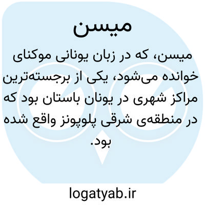 میسِن، که در زبان یونانی موکِنای خوانده می‌شود، یکی از برجسته‌ترین مراکز شهری در یونان باستان بود که در منطقه‌ی شرقی پلوپونِز واقع شده بود. این شهر تاریخی، که امروزه بیش از هر چیز یادآور دوران باشکوه تمدن میسِنی (یا موکِنایی) در عصر مفرغ است، نمادی از قدرت نظامی و سازماندهی اجتماعی یک دوره‌ی محوری در تاریخ یونان به شمار می‌آید. اعتبار این شهر به‌قدری بود که نام آن مبنای نام‌گذاری کل آن تمدن کهن قرار گرفت.
