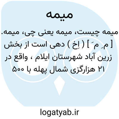میمه. [ م ِ م َ ] ( اِخ ) دهی است از بخش زرین آباد شهرستان ایلام، واقع در 21 هزارگزی شمال پهله با 500 تن سکنه. آب آن از رودخانه و راه آن ماشین رو است. ( از فرهنگ جغرافیائی ایران ج 5 ).