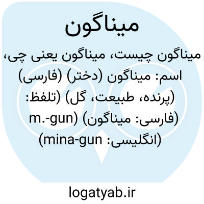 اسم: میناگون (دختر) (فارسی) (پرنده، طبیعت، گل) (تلفظ: m.-gun) (فارسی: ميناگون) (انگلیسی: mina-gun)