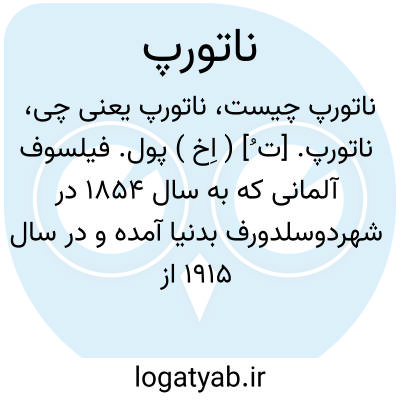 ناتورپ. [ت ُ] ( اِخ ) پول. فیلسوف آلمانی که به سال 1854 در شهردوسلدورف بدنیا آمده و در سال 1915 از دنیا رفته است. وی یکی از فیلسوفان و هواداران نئوکانتیسم است.