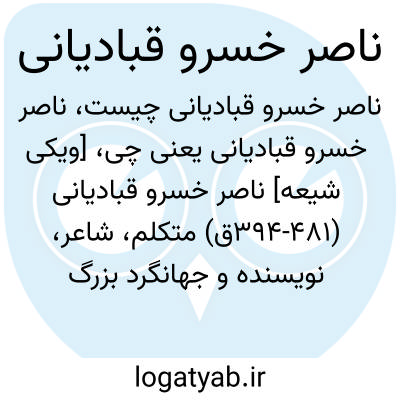 ناصر خسرو قُبادیانی (قبادیان ۳۹۴ـ بدخشان ۴۸۱ق) (ملقب به: حجت، شاعر) متألۀ اسماعیلی و جهانگرد ایرانی. در جوانی به دستگاه دیوانی محمود غزنوی پیوست. با افولِ قدرتِ غزنویان به خراسان رفت تا مگر در دستگاه سلجوقیان سِمتی یابد، اما موفق نشد و به مروالرود رفت. او که تا این زمان همۀ عمر را به عیش و باده نوشی و خوش باشی گذرانده بود، در جمادی الاخری ۴۳۷ق، به گفتۀ خودش، خوابی دید و چنان برآشفت که یکسره از خدمات دیوانی کناره گرفت و راهی حجاز شد. سفرش هفت سال به درازا کشید که شش سال آن را در خدمت مستنصر بالله، خلیفۀ فاطمی مصر، بود و به اسماعیلیه پیوست. پس از طی مدارج فرقه ای، مقام حجت یافت و برای ترویج فرقه به خراسان بزرگ بازگشت. دعوت خود را از بلخ آغاز کرد (۴۴۴ق)، اما به زودی ناچار شد به نیشابور و مازندران و سرانجام یمگان (یا: درۀ یمگان) رود و سال های پایانی عمر خود را با حمایت امیرعلی بن اسد، امیر اسماعیلی بدخشان، در این شهر در آرامش سپری کند. ناصرخسرو از بزرگ ترین قصیده سرایان زبان فارسی است. در نثر نیز به قوّت شعر خوش درخشیده است. از آثارش: دیوان (۱۳۵۳ش)؛ جامع الحکمتین (۱۳۳۲ش)؛ خوان الاخوان (۱۳۳۸ش)؛ زادالمسافرین (۱۳۳۸ش)؛ وجه دین (۱۳۶۵ش)؛ سفرنامه (۱۳۳۵ش)؛ گشایش و رهایش (۱۳۲۸ش). از آثاری که اخیراً دربارۀ ناصر خسرو نوشته شده، کتاب لعل بدخشان نوشته آلیس هانزبرگر است که مؤلف این عنوان را با توجه به اقامت طولانی ناصر خسرو در بدخشان و شهرت لعل آن ناحیه انتخاب کرده است.