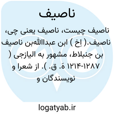 ناصیف.( اِخ ) ابن عبداﷲبن ناصیف بن جنبلاط، مشهور به الیازجی ( 1214-1287 هَ. ق. ). از شعرا و نویسندگان و ادبای بزرگ عرب است. اصلش از حمص سوریه و مولدش لبنان و مدفنش در بیروت است. رجوع به الاعلام زرکلی ص 1093 شود.