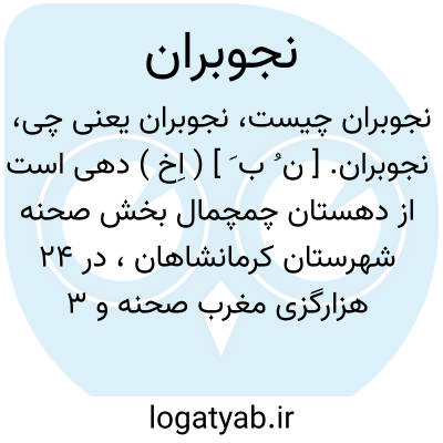 نجوبران. [ ن ُ ب َ ] ( اِخ ) دهی است از دهستان چمچمال بخش صحنه شهرستان کرمانشاهان، در 24 هزارگزی مغرب صحنه و 3 هزارگزی مغرب راه کرمانشاه به سنقر در دامنه سردسیری واقع است و 120 تن سکنه دارد. آبش از رودخانه محلی و محصولش غلات و حبوبات و توتون است. ( از فرهنگ جغرافیائی ایران ج 5 ).