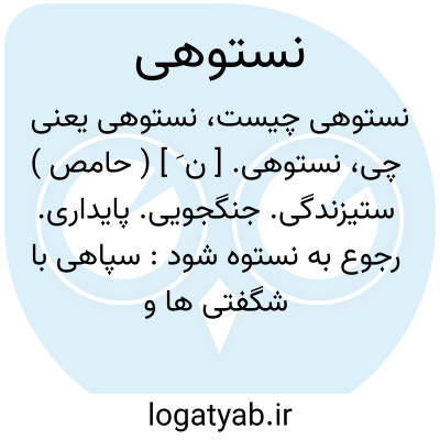 نستوهی. [ ن َ ] ( حامص ) ستیزندگی. جنگجویی. پایداری. رجوع به نستوه شود: