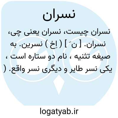 نسران. [ ن َ ] ( اِخ ) نسرین. به صیغه تثنیه، نام دو ستاره است، یکی نسر طایر و دیگری نسر واقع. ( ناظم الاطباء ) ( از اقرب الموارد ) ( المنجد ). رجوع به نسر و نسر طائر و نسر واقع شود.