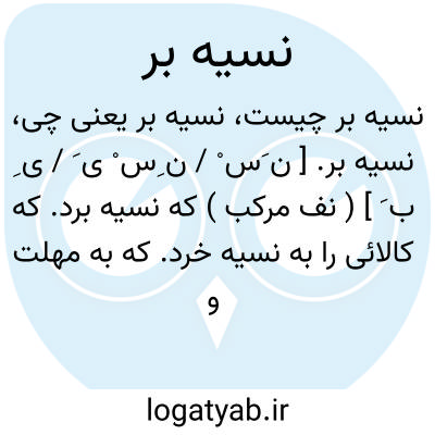 نسیه بر. [ ن َس ْ / ن ِس ْ ی َ / ی ِ ب َ ] ( نف مرکب ) که نسیه برد. که کالائی را به نسیه خرد. که به مهلت و فرصت بهای متاعی را که برده است بپردازد.