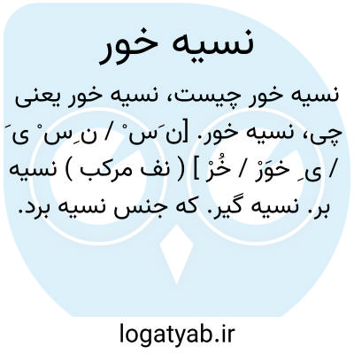 نسیه خور. [ن َس ْ / ن ِس ْ ی َ / ی ِ خوَرْ / خُرْ ] ( نف مرکب ) نسیه بر. نسیه گیر. که جنس نسیه برد. که غذای نسیه خورد.