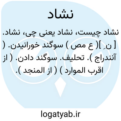 نشاد. [ ن ِ ]( ع مص ) سوگند خورانیدن. ( آنندراج ). تحلیف. سوگند دادن. ( از اقرب الموارد ) ( از المنجد ). مناشدة. ( منتهی الارب ) ( اقرب الموارد ). رجوع به مناشدة شود. || خواندن کسی را به کاری. مناشدة. ( از المنجد ).