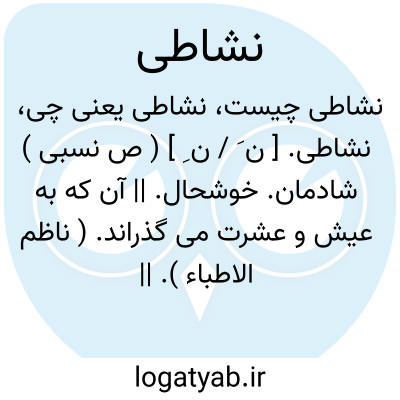 نشاطی. [ ن َ / ن ِ ] ( ص نسبی ) شادمان. خوشحال. || آن که به عیش و عشرت می گذراند. ( ناظم الاطباء ). || تیزدل. ( السامی ).
