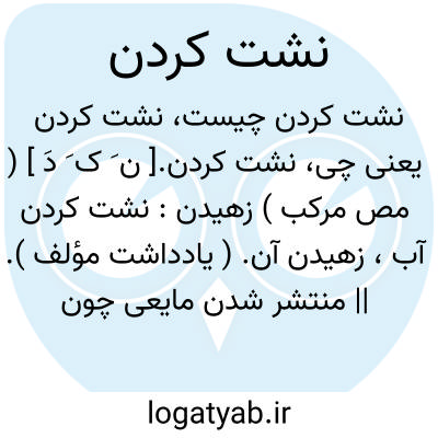 ( مصدر ) ۱ - نم پس دادن تراویدن و بیرون زدن مایع از ظرف. ۲ - درز کردن خبر برملا شدن: این خبر دهان بدهان گشت و معلوم نگشت از کجا نشت کرد...