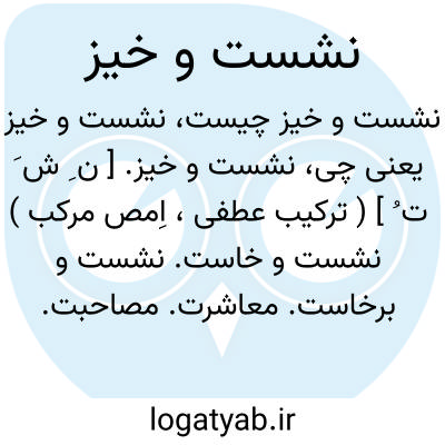 نشست و خیز. [ ن ِ ش َ ت ُ ] ( ترکیب عطفی، اِمص مرکب ) نشست و خاست. نشست و برخاست. معاشرت. مصاحبت.
