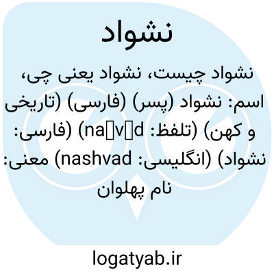 اسم: نشواد (پسر) (فارسی) (تاریخی و کهن) (تلفظ: našvād) (فارسی: نشواد) (انگلیسی: nashvad)