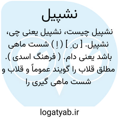 نشپیل. [ ن ِ ] ( اِ ) شست ماهی باشد یعنی دام. ( فرهنگ اسدی ). مطلق قلاب را گویند عموماً و قلاب و شست ماهی گیری را خوانند خصوصاً. ( جهانگیری ) ( انجمن آرا ) ( از آنندراج ).شست ماهی. ( اوبهی ). قلابی که بر سر رشته ای ابریشمی یا از موی اسب کنند و بدان گوشت یا خوردنی دیگر پیوندند و در آب افکنند صید ماهی را. ( یادداشت مؤلف ). شست و دام و قلاب ماهی گیری. ( ناظم الاطباء ):