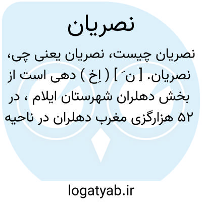 نصریان. [ ن َ ] ( اِخ ) دهی است از بخش دهلران شهرستان ایلام، در 52 هزارگزی مغرب دهلران در ناحیه کوهستانی گرمسیری واقع است و 110 تن سکنه دارد. آبش از چشمه، محصولش غلات و روغن و پشم، شغل اهالی زراعت و گله داری است. این ده به دو قسمت نزدیک بهم به نامهای نصریان علیا و نصریان سفلی تقسیم شده است. سکنه نصریان علیا 65 تن است. ( از فرهنگ جغرافیائی ایران ج 5 ).