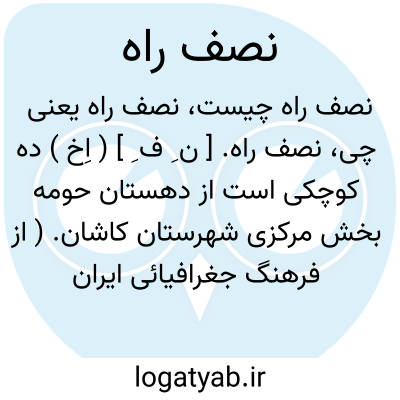 نصف راه. [ ن ِ ف ِ ] ( اِخ ) ده کوچکی است از دهستان حومه بخش مرکزی شهرستان کاشان. ( از فرهنگ جغرافیائی ایران ج 3 ).