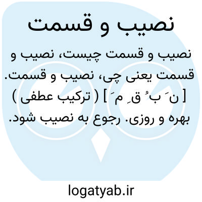 نصیب و قسمت. [ ن َ ب ُ ق ِ م َ ] ( ترکیب عطفی ) بهره و روزی. رجوع به نصیب شود.