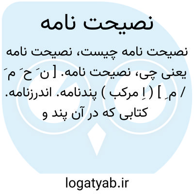 نصیحت نامه. [ ن َ ح َ م َ / م ِ ] ( اِ مرکب ) پندنامه. اندرزنامه. کتابی که در آن پند و موعظه و راهنمائی های زندگی باشد: این نصیحت نامه و این کتاب مبارک شریف را بر چهل و چهار باب نهادم. ( منتخب قابوسنامه ص 6 ).