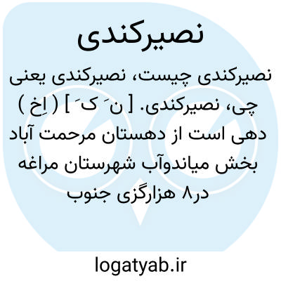 نصیرکندی. [ ن َ ک َ ] ( اِخ ) ده کوچکی است از دهستان سراجوی بخش مرکزی شهرستان مراغه. ( از فرهنگ جغرافیائی ایران ج 4 ).
