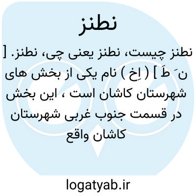 ۱ - نام یکی از بخشهای شهرستان کاشان. استان دوم. این بخش در قسمت جنوبی و باختر شهرستان واقع و هوای آن نسبت به پستی و بلندی متغیر میباشد. قسمت باختر و جنوب بخش کوهستانی و هوای آن سردسیر و قسمت خاور و شمال آن دشت و شن زار و هوایش معتدل است. این بخش ۴۹ آبادی و مجموعا ۴۴٠٠٠ تن سکنه دارد. راه شوسه کاشان به نائین از وسط این بخش میگذرد. کوه مرتفع کرکس که مرتفع ترین قله آن ۳۸۹۸ متر است در وسط این بخش واقع شده است. ۲ - قصبه نطنز مرکز این بخش میباشد و در ۳۲۶ کیلومتری طهران و ۷۴ کیلومتری جنوب خاوری کاشان و ۷۱ کیلومتری باختر اردستان است. طول ۵۱ درجه و ۳۱ دقیقه محصول. عمده آن غلات حبوبات انواع میوه خربزه و هندوانه آن بخوبی معروف است. در حدود ۴٠٠٠ تن سکنه دارد. صنایع دستی زنان قالی بافی است. بناهای قدیمی آن عبارتست از: ۱ - بنای آتشکده کوشک از سنگ و ساروج ساخته شده و از آثار دوره ساسانیانست. ۲ - محراب مسجد کوچه میر تاریخ بنا عهد سلجوقیان. ۳ - مسجد جمعه تاریخ بنا ۷٠۴ ه.ق. ۴ - مقبره شیخ عبدالصمد در مسجد جامع تاریخ بنا ۷٠۷ ه.ق.۵ - کاروانسرای شاه عباسی از عهد صفویه ۶ -. مقبره عون بن علی از آثار صفویه و غیره.