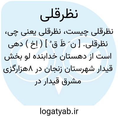 نظرقلی. [ ن َ ظَ ق ُ ] ( اِخ ) دهی است از دهستان خدابنده لو بخش قیدار شهرستان زنجان در 8هزارگزی مشرق قیدار در ناحیه کوهستانی سردسیری واقع است و 684 تن سکنه دارد. آبش از چاه تأمین می شود. محصولش غلات و شغل اهالی زراعت است. ( از فرهنگ جغرافیایی ایران ج 2 ).