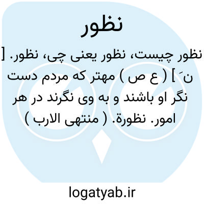 نظور. [ ن َ ] ( ع ص ) مهتر که مردم دست نگر او باشند و به وی نگرند در هر امور. نظورة. ( منتهی الارب ) ( آنندراج ). مهتری که مردم در هرکاری به وی نگرندو دست نگر او باشند. ( ناظم الاطباء ). مهتر منظورالیه هر قوم و جماعت. ( از اقرب الموارد ). ناظورة. نظیرة. نظورة. ( متن اللغة ). || آن که باز نگرداند نگاه را از آن که دوست دارد آن را. ( منتهی الارب ) ( آنندراج ). و یا از کسی که وی را محزون می کند. ( از ناظم الاطباء ). من لا یغفل النظر الی ما اهمه، و فی القاموس: الی من اهمه، و عبارة الاساس: لایغفل عن النظر فیما اهمه. ( اقرب الموارد ).