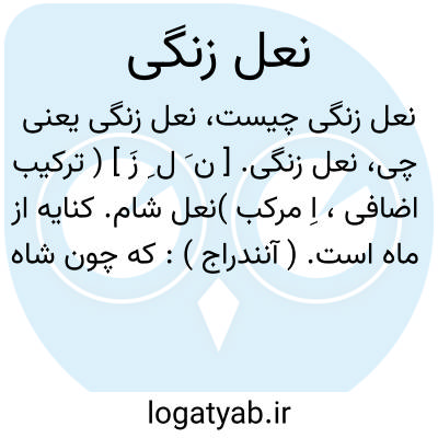نعل زنگی. [ ن َ ل ِ زَ ] ( ترکیب اضافی، اِ مرکب )نعل شام. کنایه از ماه است. ( آنندراج ):