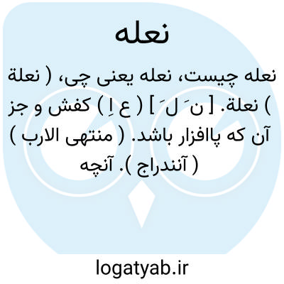 ( نعلة ) نعلة. [ ن َ ل َ ] ( ع اِ ) کفش و جز آن که پاافزار باشد. ( منتهی الارب ) ( آنندراج ). آنچه بدان پای را از تماس با زمین حفظ کنند و آن اخص از نعل است. ( از اقرب الموارد ) ( از المنجد ). لغتی است در نعل. ( از متن اللغة ). || زوجة. ( اقرب الموارد ) ( متن اللغة ). رجوع به نعل شود.