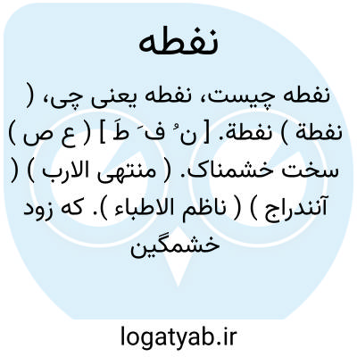 ( نفطة ) نفطة. [ ن ُ ف َ طَ ] ( ع ص ) سخت خشمناک. ( منتهی الارب ) ( آنندراج ) ( ناظم الاطباء ). که زود خشمگین گردد. ( از اقرب الموارد ) ( از متن اللغة ). آنکه گونه وی از خشم سرخ می گردد. ( ناظم الاطباء ) ( از متن اللغة ).