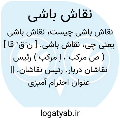 ( صفت اسم ) ۱ - رئیس نقاشان دربار. ۲ - عنوان احترام آمیزی بود برای نقاشان: میرزا علی اکبر خان نقاش باشی معلم علم نقاشی ( دار الفنون ).