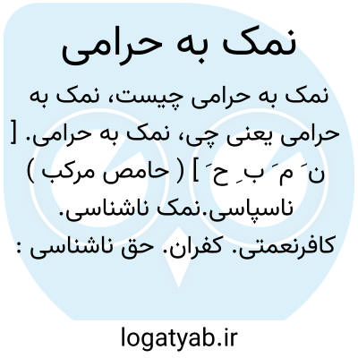 نمک به حرامی. [ ن َ م َ ب ِ ح َ ] ( حامص مرکب ) ناسپاسی.نمک ناشناسی. کافرنعمتی. کفران. حق ناشناسی: اگر تا به حالا نمک به حرامی از او ظاهر نشده است حالاهم نخواهد شد. ( امیرارسلان، از فرهنگ فارسی معین ).