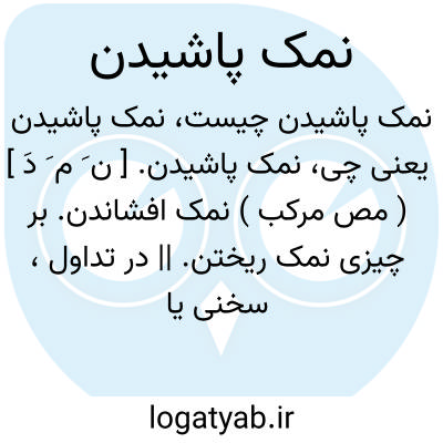 نمک پاشیدن. [ ن َ م َ دَ ] ( مص مرکب ) نمک افشاندن. بر چیزی نمک ریختن. || در تداول، سخنی یا حرکتی ناپسند و ناموجه و دور از ادب ادا کردن.