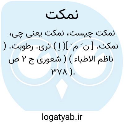 نمکت. [ ن َ م َ ]( اِ ) تری. رطوبت. ( ناظم الاطباء ) ( شعوری ج 2 ص 378 ).