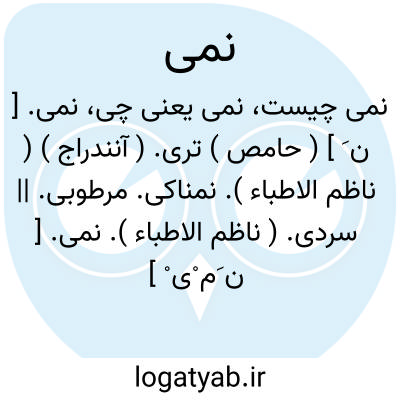 نمی. [ ن ُم ْ می ی ] ( ع اِمص، اِ ) ناراستی. دغلی. ( منتهی الارب ). خیانت. ( اقرب الموارد ) ( متن اللغة ). || عیب. ( منتهی الارب ) ( اقرب الموارد ) ( متن اللغة ). || دشمنی. ( منتهی الارب ). عداوت. ( اقرب الموارد ). || سرشت. ( منتهی الارب ). طبیعت. ( اقرب الموارد ). رجوع به معنی بعدی شود. || گوهر مرد و نژاد آن. ( از منتهی الارب ). جوهر واصل انسان. ( از اقرب الموارد ). طبیعت و گوهر انسان و اصل او. ( از متن اللغة ). نیز رجوع به معنی قبلی شود. || سنگ ترازو. ( منتهی الارب ) ( از اقرب الموارد ). || پشیز. ( مهذب الاسماء ). زر مغشوش که در آن مس بوده باشد. ( فرهنگ خطی ). پشیز یا درم که در آن آمیزش مس یا ارزیز باشد. ( منتهی الارب ) ( اقرب الموارد ). واحد آن نُمیّة است. ( از نقود ). کلمه ای است رومی. ( از اقرب الموارد ). ج، نَمامی. || احدی. کسی. یقال: ما به نمی؛ یعنی کسی نیست در آن. ( از منتهی الارب ). ای احد. ( مهذب الاسماء ) ( اقرب الموارد ) ( از متن اللغة ).
